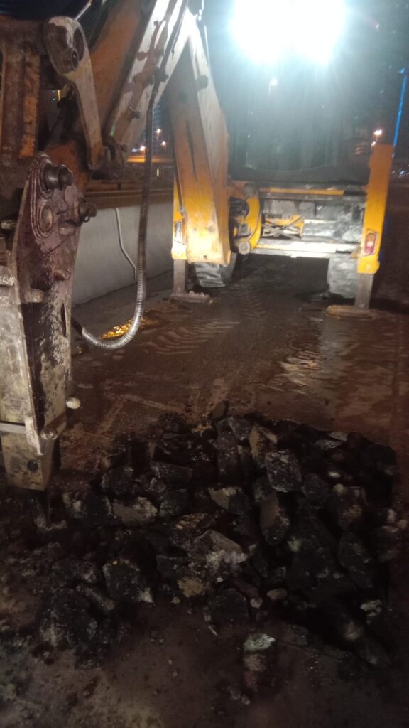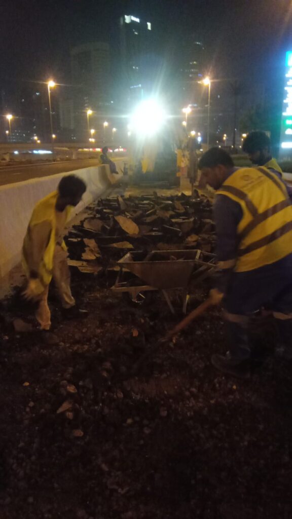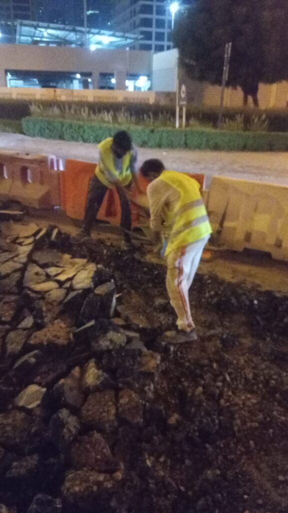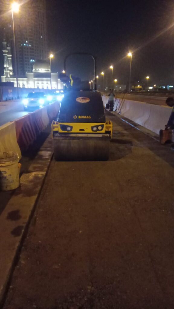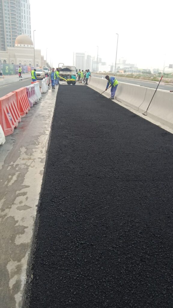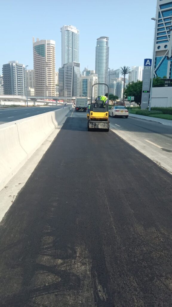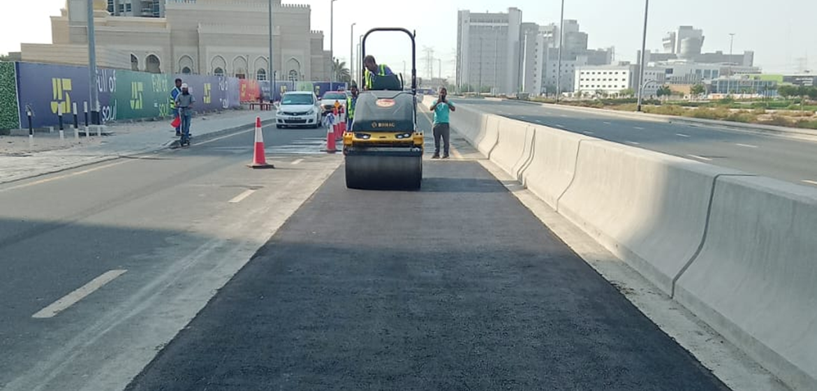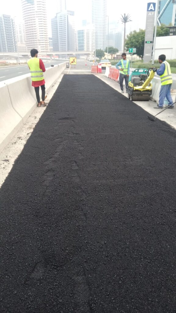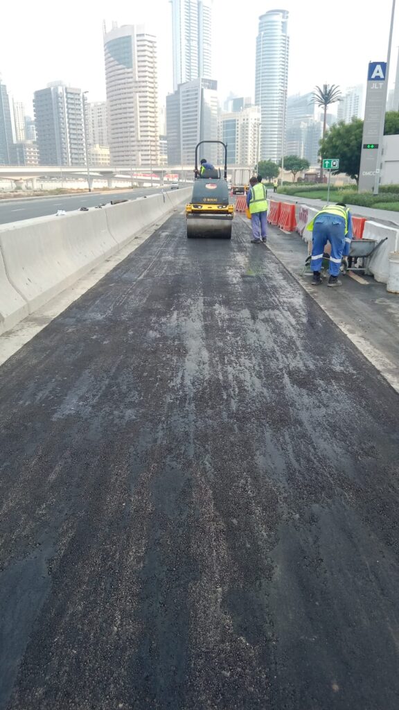 Asphalt reinstalment work in front of cluster A R-2